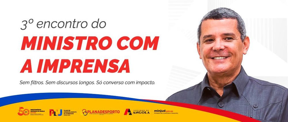 O Ministério da Juventude e Desportos informa que o Ministro Rui Luís Falcão Pinto de Andrade realizará, nesta quinta-feira, 17 de Julho, às 11h00, na Arena do Kilamba, o 3.º Encontro com a Imprensa.